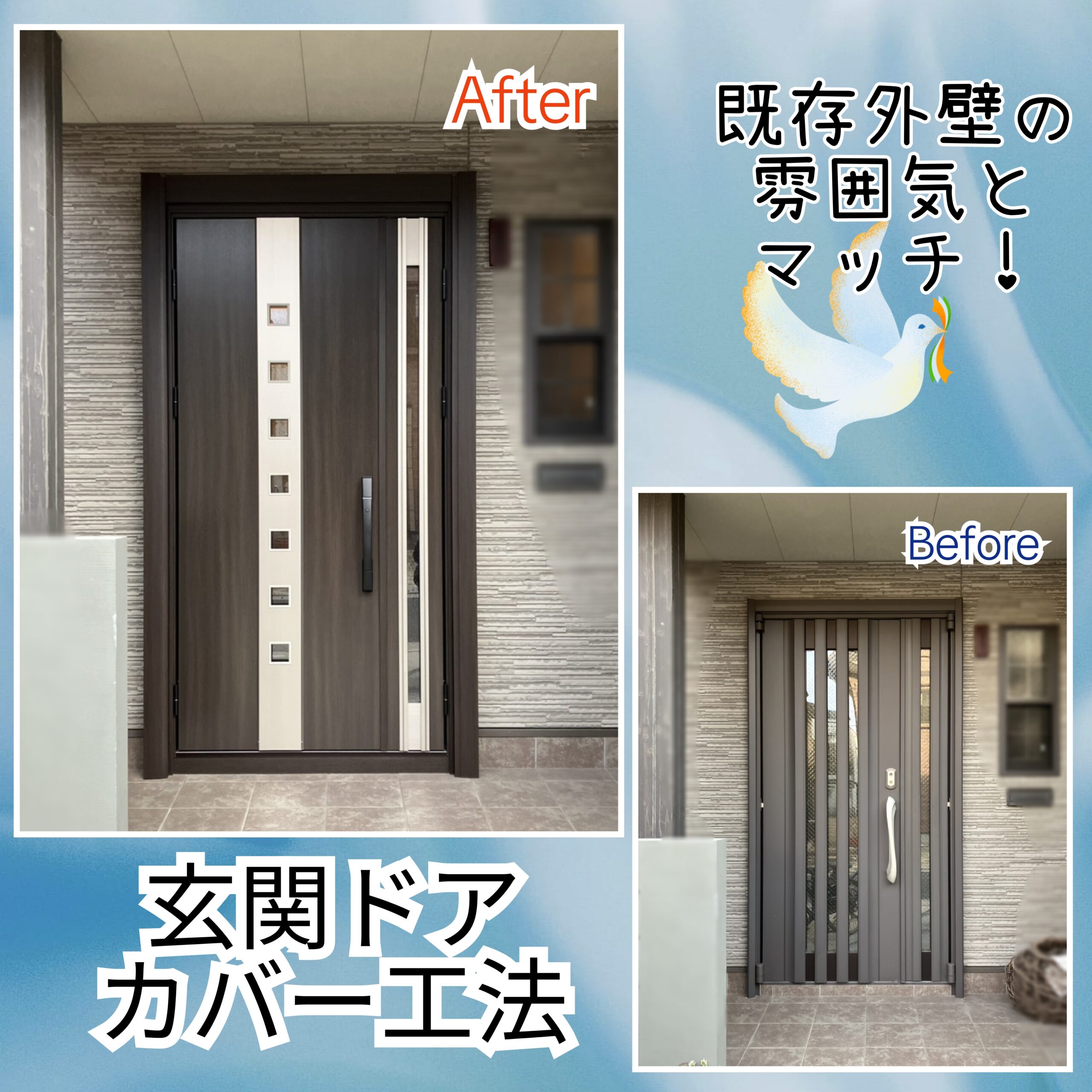 中区のG様邸にて玄関ドアカバー工法を行いました!